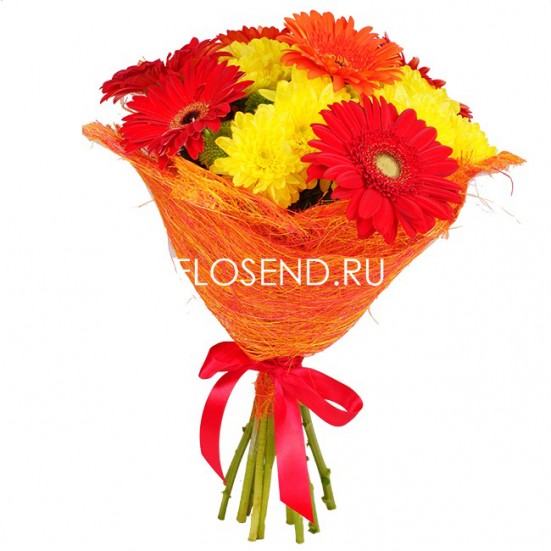 Букет «7 красных гербер и 4 хризантем» в Саранске