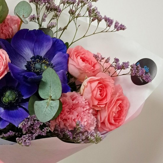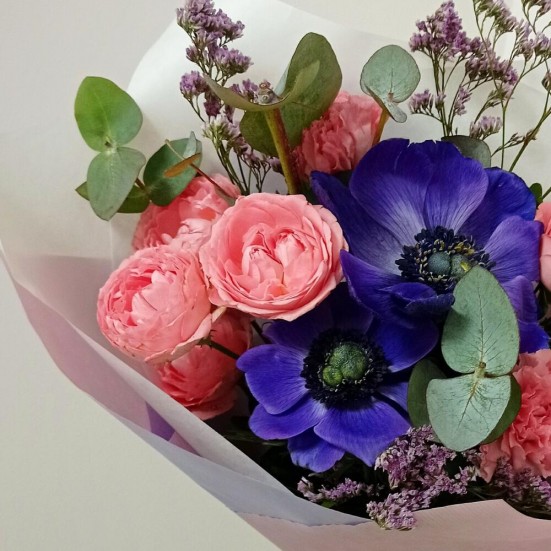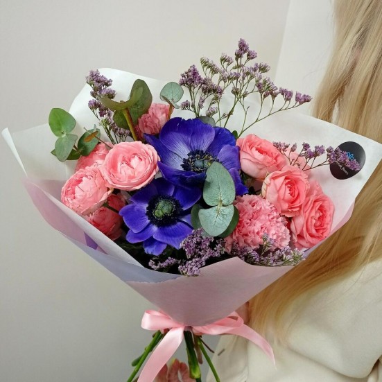 Букет «Анемон, розы пионовидная»