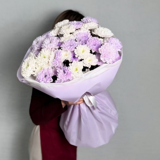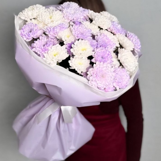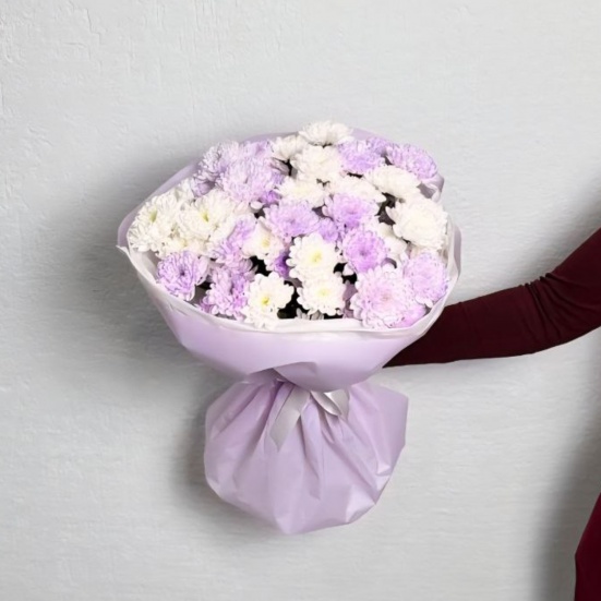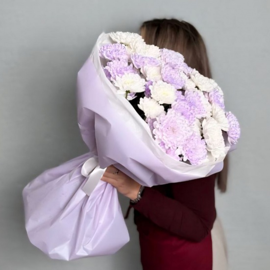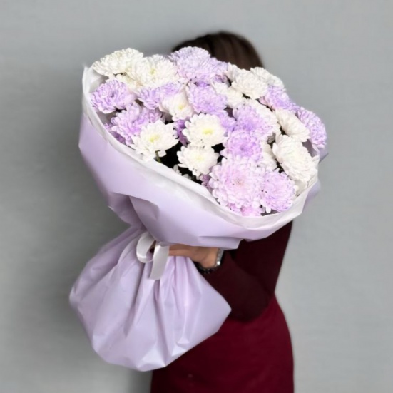 Букет из 9 фиолетовых и белых хризантем в Саранске