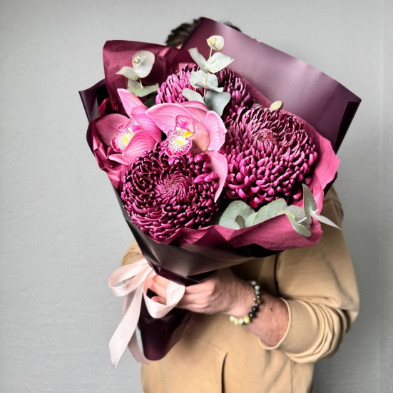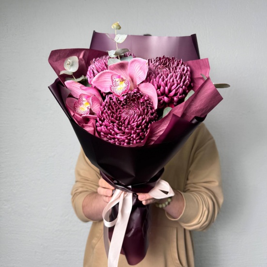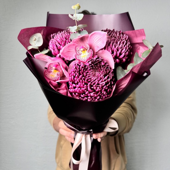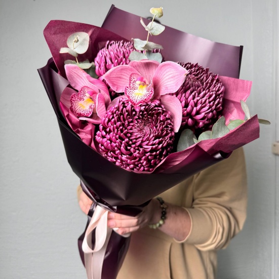 Букет из хризантем Бигуди и Орхидей в Саранске