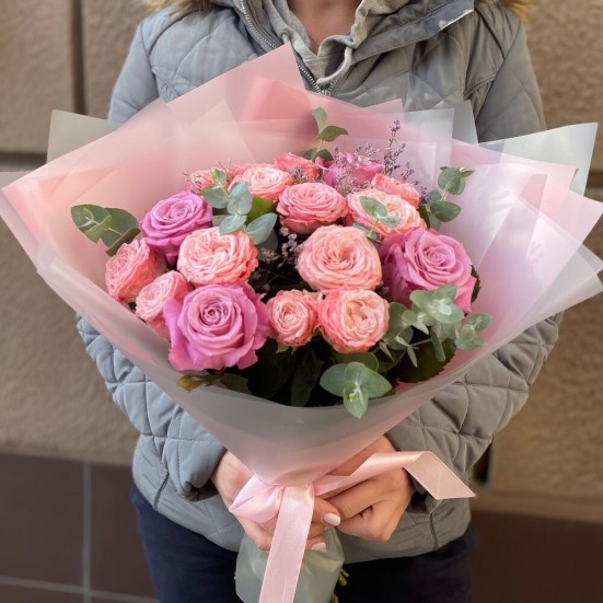 Букет «Пионовидных роз с эвкалиптом» в Саранске