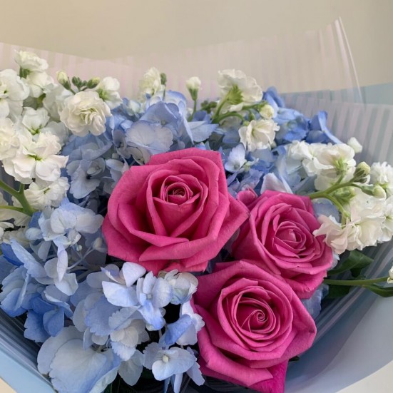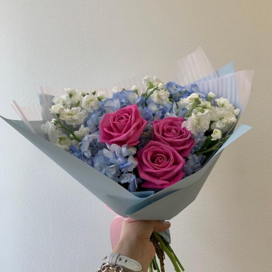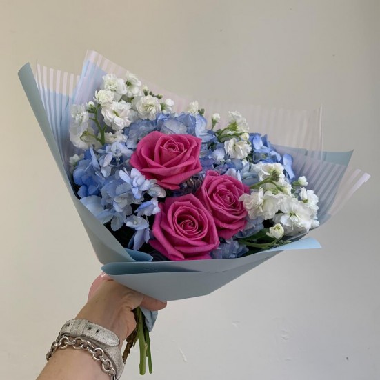 Букет с голубой гортензией и другими цветами