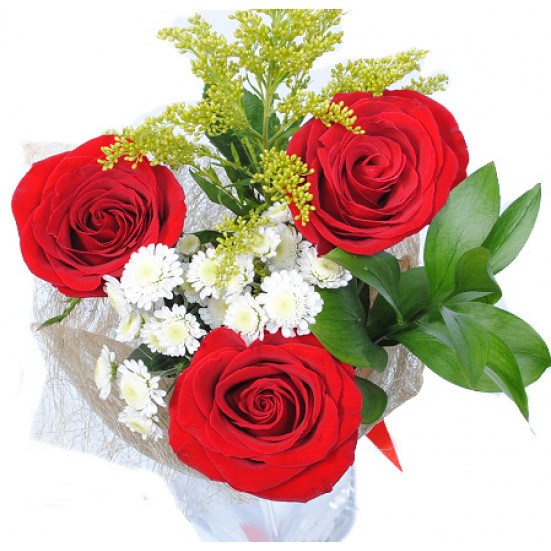 Букет «3 красных роз и 2 белых хризантем» в Саранске